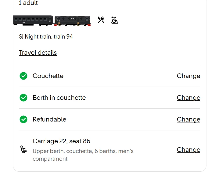 changement de couchette train SJ Suede