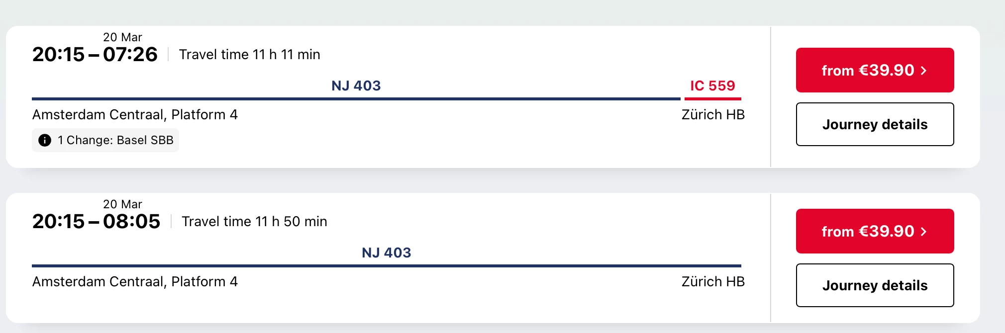 One is the Nightjet NJ403 (where we have to change trains in Basel to the IC 559), arriving at Zurich at 0726.