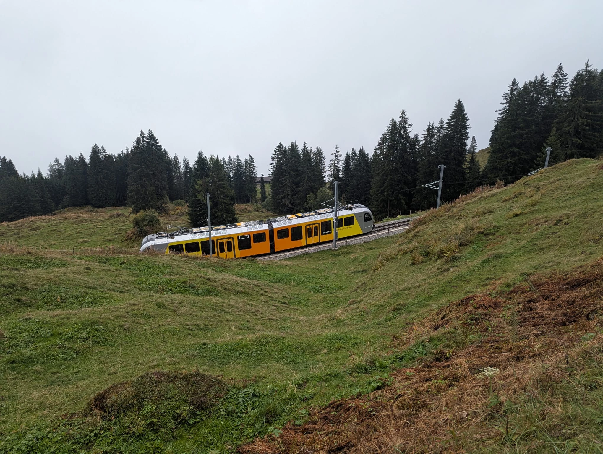 Hike between Mürren and Grütschalp (Train/cable car station). Grütschalp is easy to reach by cable car for Lauterbrunnen, form there it is possible to take a train to Mürren. (Both train and cable car can be taken with an interrail pass)