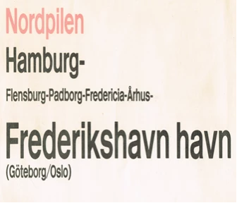After a quick transfer to Hamburg Altona we continued our trek north. We went from Hamburg to Frederikshavn on the “Nordpilen11”. I know we took this train because I have a piece of branded swag (apologies, DSB, it was a long time ago, I was young, I meant to bring it back, etc . . .) which showed that there was a timetabled route all the way from Hamburg to Oslo, via Frederikshavn and Goteborg. According to my 1991 Thomas Cook the “Nordpilen” only went as fas as Fredericia, but there were still connections available.