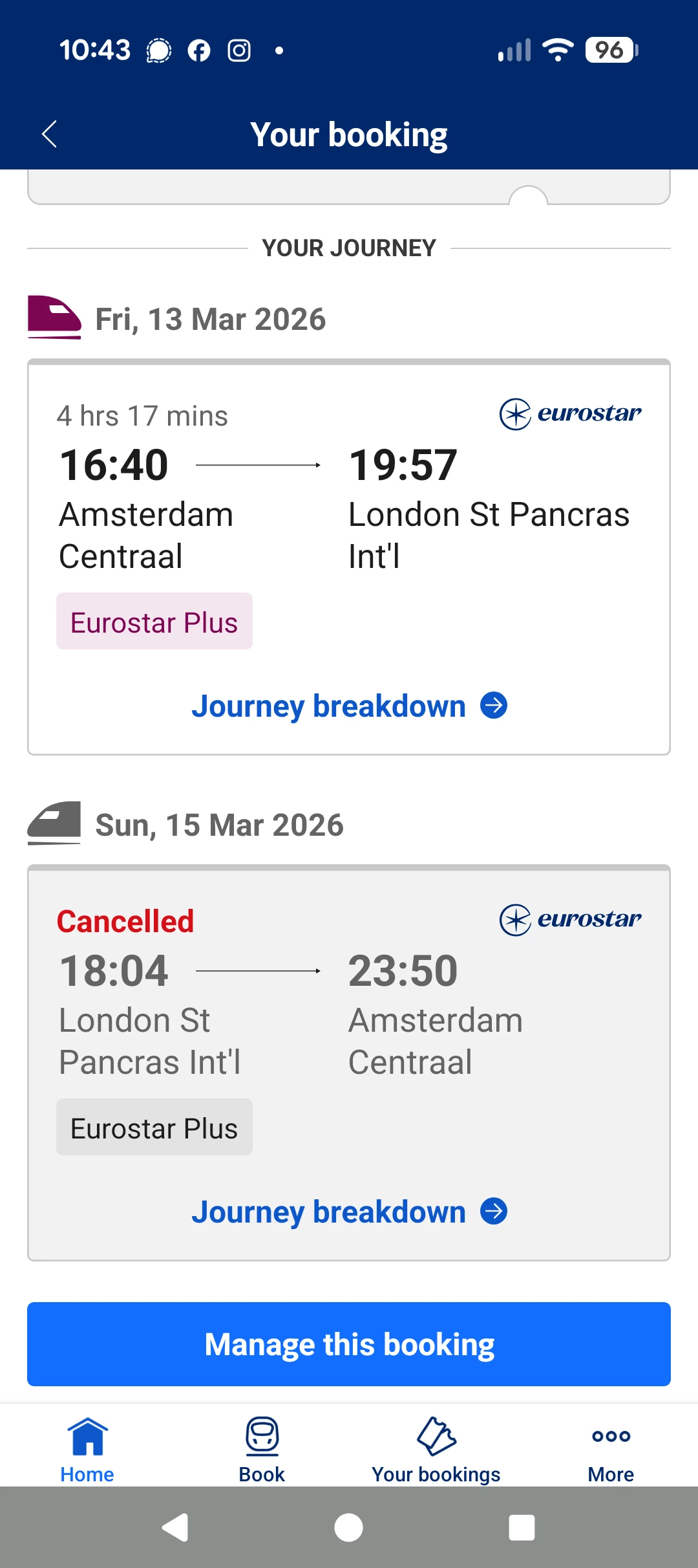 Last night I checked in the Eurostar app and the return leg said “Cancelled”. I received no email or or SMS. No explanation. Nothing about a refund. On the Eurostar website (not the app) the return part of the journey has just disappeared. On the B-Europe site (where I booked it) the return part has disappeared without any mention.