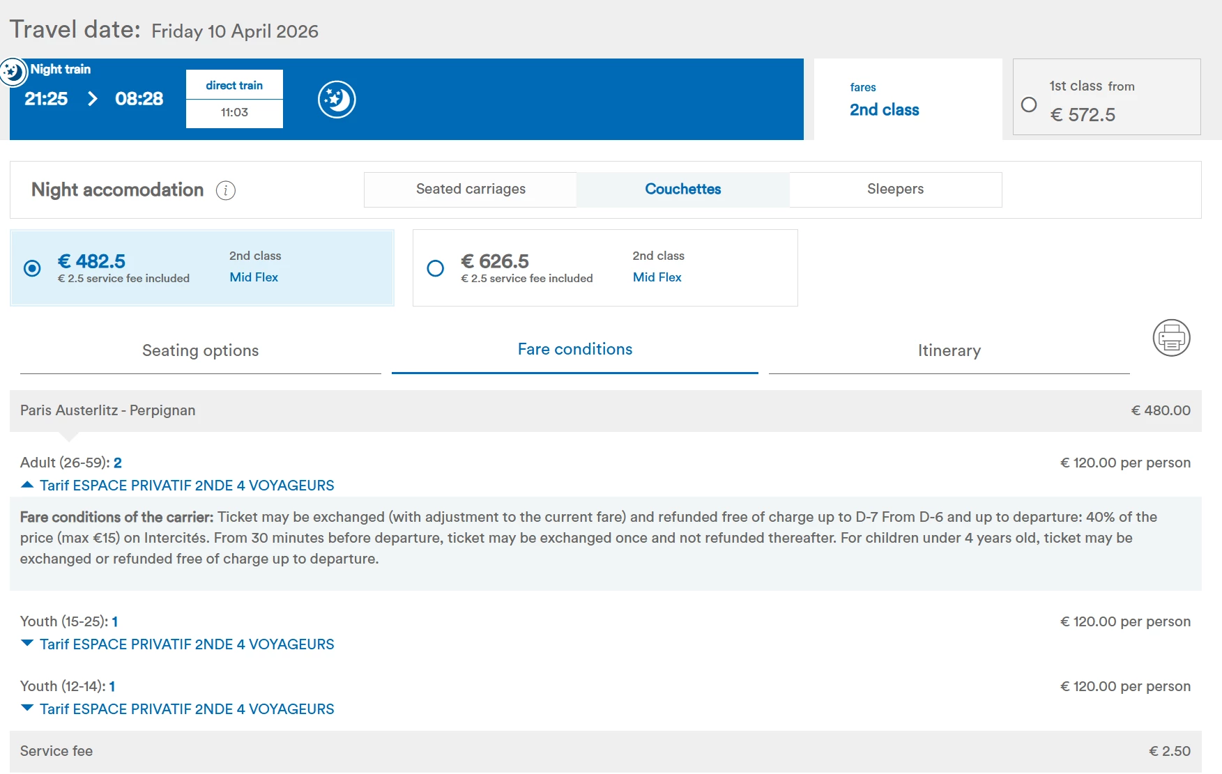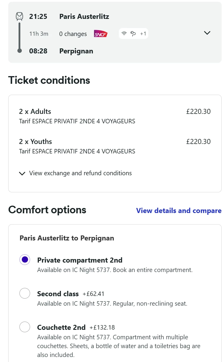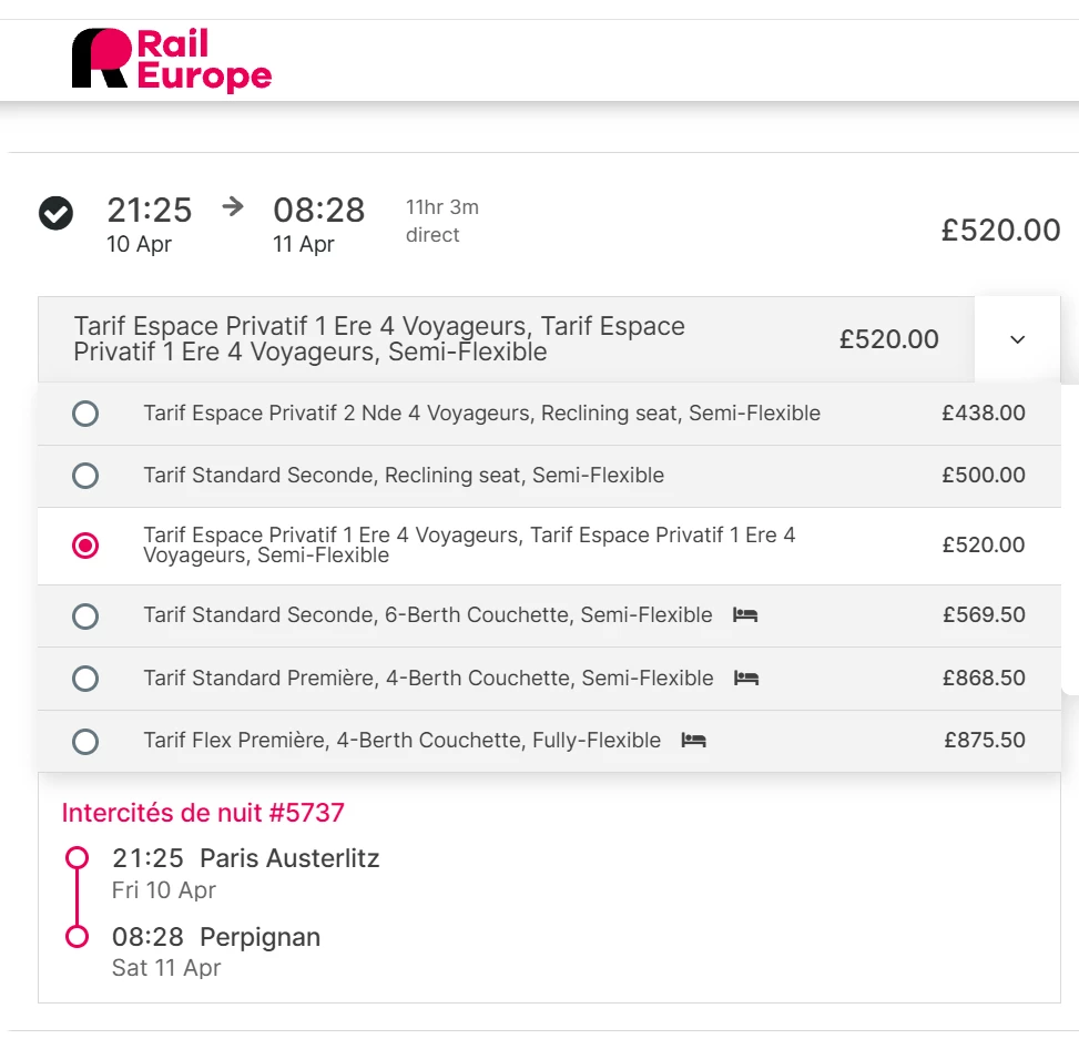 On the sncf booking site it appears I can still get a private space (Espace Privatif), but here I can’t tell if one of the above prices is for a private couchette. Any ideas? If not, do we know what the price difference is?