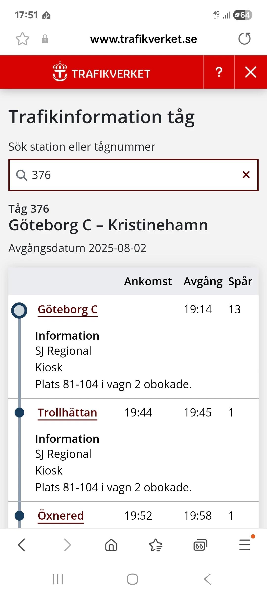 16:59 Goteborg C (Sweden) RE 186 Regional Operated by SJ AB