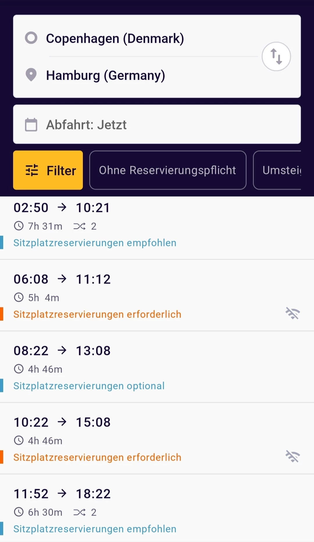 - EN (München/Zürich)-Salzburg-Budapest: The EuroCity part of this train is not shown in the app. With the EC carriages you can travel without a reservation between Salzburg and Budapest.