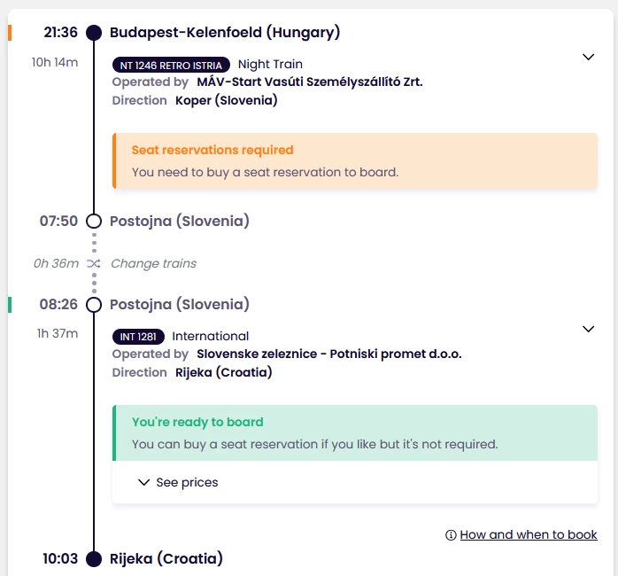 - For many EC/RJ trains between Budapest and Vienna it says that a reservation is required. That’s not true. Only for domestic trips INSIDE Hungary (e.g. Budapest-Györ) a reservation is required (which can be easily done on a ticket machine at the station or also online).